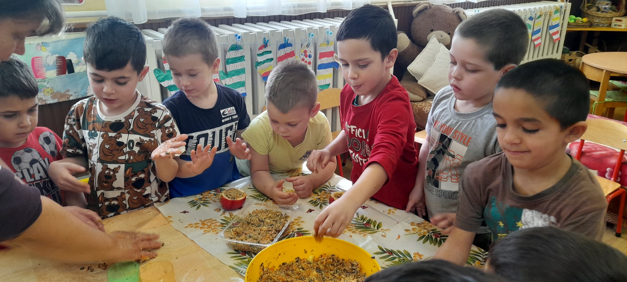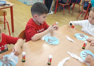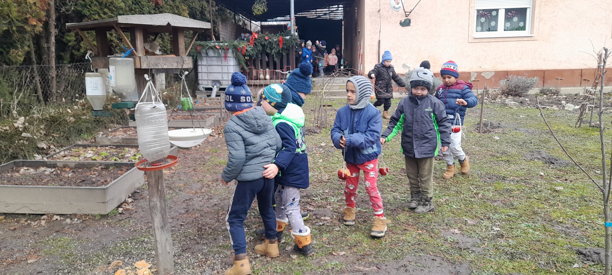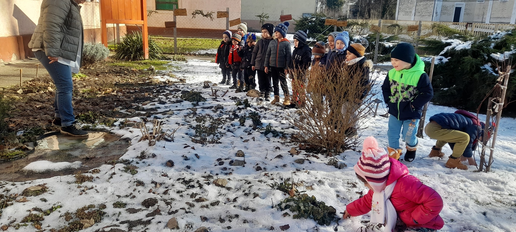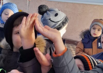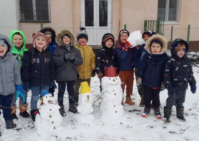Újévi malackáink meghozták a szerencsénket hisz ebben a hónapban az időjárás megmutatta téli arcát. A gyermekek a csoportszobai és udvari tevékenységek során tapasztalatot gyűjthettek a téli évszak jellemzőiről. Napi szinten megbeszéltük az időjárás jellemzőit, kísérleteket végeztünk hóval-jéggel-vízzel és nem feledkeztünk el kertünk madárkáiról sem, finom és tápláló madárkalácsot készítettünk.