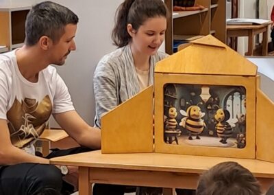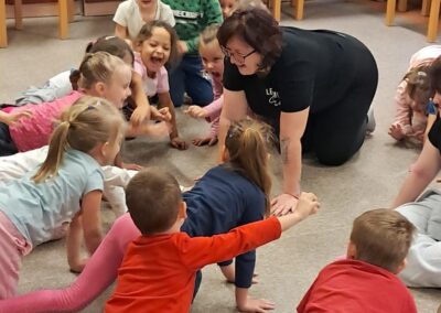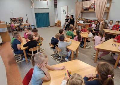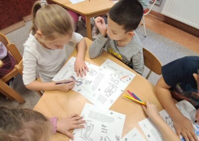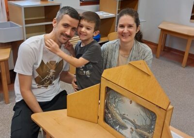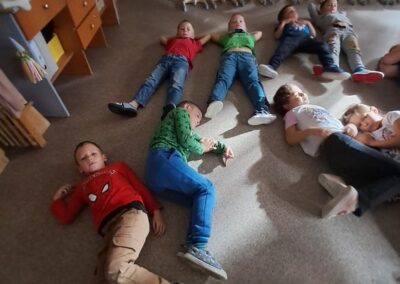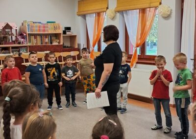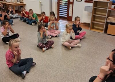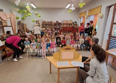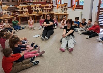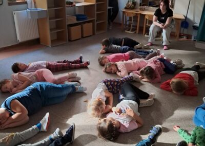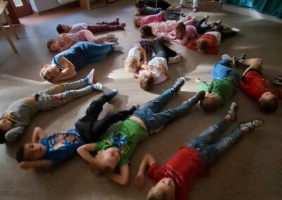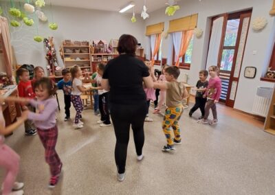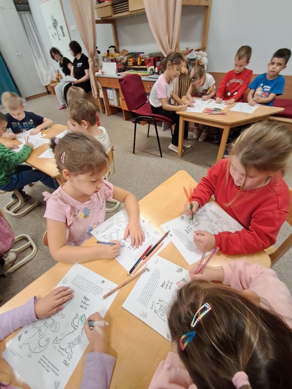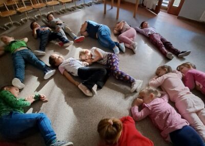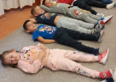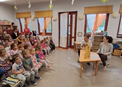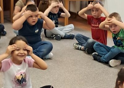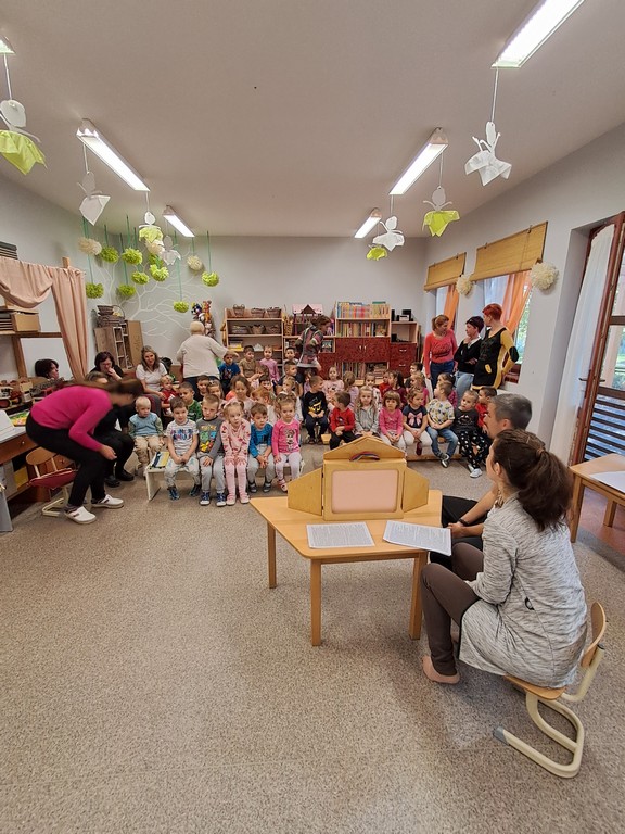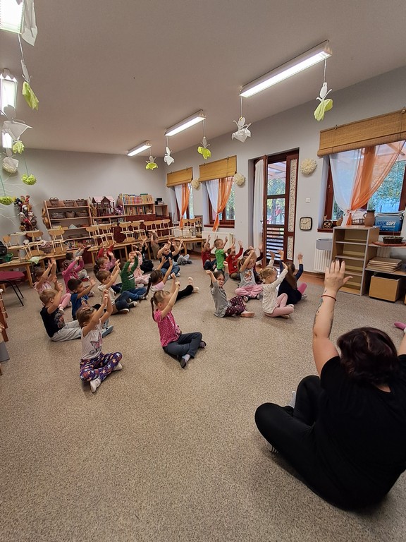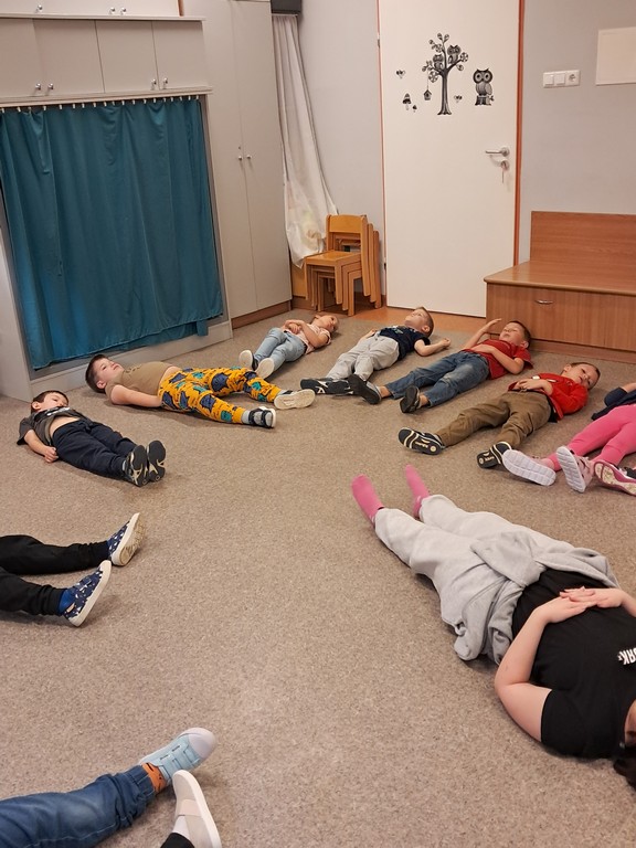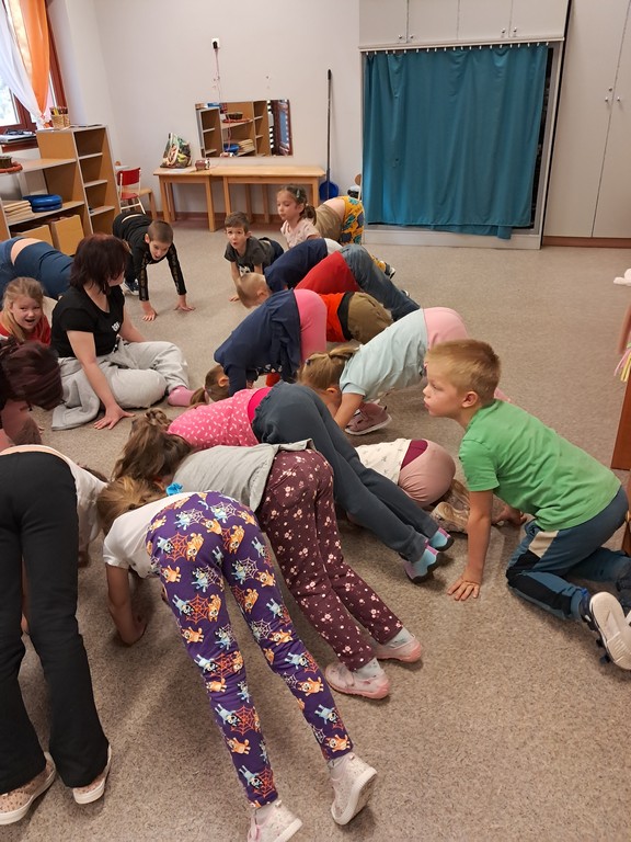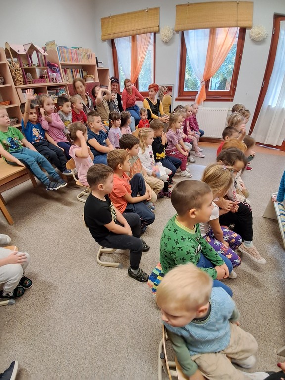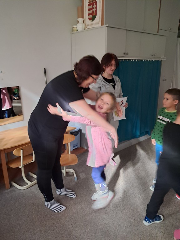 Óvodánkban az országos alapprogramnak megfelelően az egészséges életmódra nevelés kiemelt terület, s ennek megerősítése érdekében sokféle programot szervezünk az év során mind a szülőknek, mind a gyermekeknek. Ma a hangsúly a lelki egészség megteremtésén, megőrzésén volt. Gyermekeink az egész délelőtt során változatos tevékenységek segítségével erősíthették lelki egészségüket, felszabadíthatták gátlásaikat, elengedhették gondjaikat, feloldhatták feszültségeiket. Ebben segítségünkre volt Jánszkiné Virág Henrietta- holisztikus lélekterapeuta és lánya Jánszki Lara, akik elsősorban gyermekjóga, valamint feszültségoldó történetek változatos feldolgozásán keresztüli komplex foglalkozással hozták felszínre, ill. csitították el a szinte minden gyermekben fellelhető a feszültségeket. A nap folytatásában az óvodánkba járó Varga Dénes szülei Varga Balázs és felesége Szekeres Adrienn az általuk írt történetekkel és a történetekhez elkészített egyedi grafikáikkal színesített interaktív papírszínházi előadással szórakoztatták a gyermekeket és felnőtteket egyaránt. A történetek főszereplői az óvodai csoportok, az ide járó gyermekek és felnőttek voltak, így a mesebeli történésekkel gyakran késztették nevetésre a közönséget, ami igazán sikeres feszültségoldásnak bizonyult.