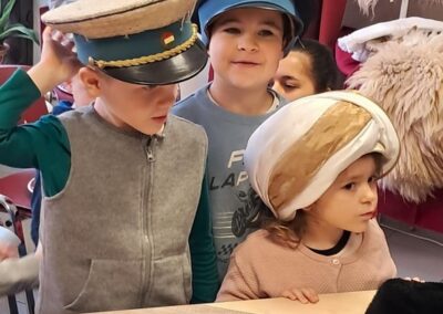 A Februári „hol volt hol nem volt„ programsorozatunk alkalmával a városi Múzeumba látogattunk el az óvodánkkal. Samuné Bogyó Hajnalka Múzeumpedagógustól sokoldalúan megközelített komplex foglalkozásban volt része a gyerekeinknek ahol megismerkedhettek a farsangi népszokásokkal , hagyományokkal , jelmezekkel. Megcsodálhatták és fel is próbálhatták a Busó álarcot , bárány szőr mellényt , de volt aki katona , vagy paraszt legény bőrébe bújt.