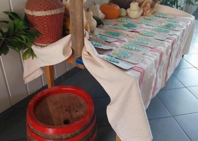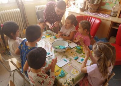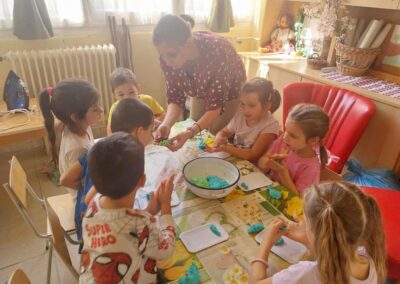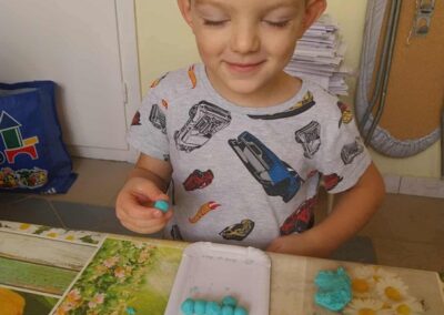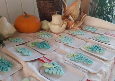 Októberi alkotószoba 2025. november. 03. | Bóbita Óvoda Megkezdődtek óvodánkban az alkotószobai foglalkozások. Októberben só-liszt gyurmából készítettek szőlőfürtöket a nagycsoportosok Panni nénivel. Alkotás közben énekeltek, szüreti néphagyományokról beszélgettek. Jó hangulatban telt el az idő.
