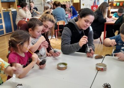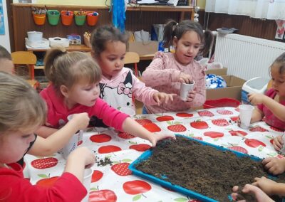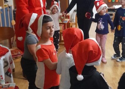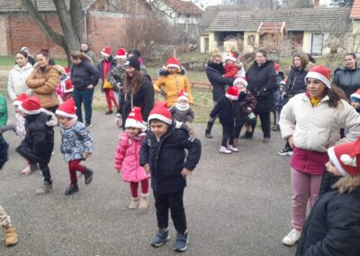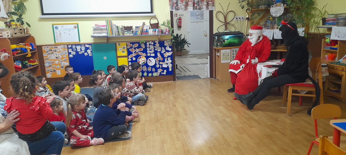 A decemberi időszak programokban-eseményekben gazdag hónap, melyben kiemelt szerepet kapott az adventi készülődés, az ünnepvárás hangulatának megteremtése. A gyermekek változatos tevékenységeken keresztül ismerkedhettek meg az ünnepkör hagyományaival. A hónap elején Mikulás a Krampusza kíséretében látogatta meg az óvodát, örömet és élményt nyújtva, ajándékokat osztva a gyermekek számára, melyeket dalokkal-versekkel-rajzokkal köszöntek meg a gyerekek. Az ünnepi programok sorát színesítette a Mikulásfutás, amelyen az óvodások mellett az iskolások és a szülők is aktívan részt vettek. Luca naphoz kapcsolódva búzát vetettünk, gondoztuk, figyeltük hogyan növekszik. A szülőkkel közös munkadélután során lehetőség nyílt az együtt alkotásra: mézeskalács sütés, tobozfestés, füzérek készítése – melyekkel karácsonyfánkat díszítettük fel. A gyermekek nagy örömére utolsó héten az angyalkák játékokkal, kreatív eszközökkel lepték meg óvodásainkat. Az ünnepi időszak zárásaként a gyermekek zenés műsorral készültek, melyet a település lakossága előtt adtak elő.