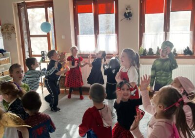 Az idei farsang vidám hangulatban telt az óvodában. A gyerekek örömmel bújtak jelmezbe, és izgatottan várták a közös programokat. Táncoltunk, játszottunk, sokat nevettünk, és együtt élveztük a vidám délelőttöt. Köszönjük a szülők támogatását és a készülődésben nyújtott segítséget, szép közös élmény volt mindannyiunk számára.