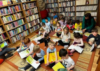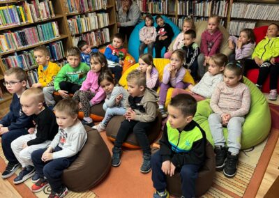A Költészet napja alkalmából óvodásaink könyvtárlátogatáson vettek részt, ahol játékos formában ismerkedhettek meg a versek világával. A vidám, ritmusos mondókák és versek közös mondása mellett tapsoltunk, mozogtunk is, így a gyerekek élményszerűen kapcsolódhattak be a foglalkozásba. A látogatás végén minden kisgyermek választhatott magának egy könyvet, amelyet közösen nézegettünk, beszélgettünk róla, ezzel is erősítve az olvasás iránti érdeklődésüket. Ez a tartalmas délelőtt nemcsak élményekkel gazdagította a gyerekeket, hanem hozzájárult ahhoz is, hogy pozitív kapcsolatot alakítsanak ki a versek és a könyvek világával.